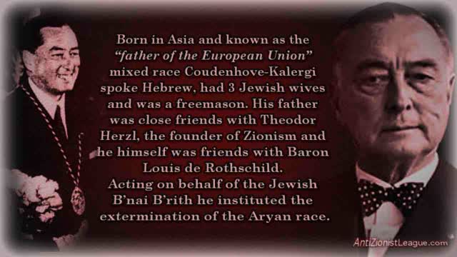 Richard Nikolaus Eijiro von Coudenhove-Kalergi........Read about him here - https://antizionistleague.com/scrapbook/jewish-zionism/the-european-union/richard-nikolaus-eijiro-von-coudenhove-kalergi/