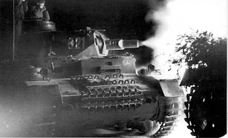 A Panzer IV Ausf E fires its 75mm Kwk L-24 cannon at enemy positions