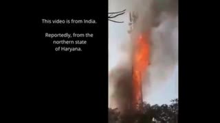 Watch a 5G tower burn down in India