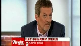 A caller on "The Wright Stuff" (a UK Channel 5 chat show) describes Tony Blair’s shameful rush to fight an illegal war (ignoring millions who marched against the war)