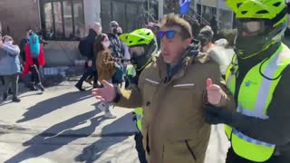 Lors de la manifestation des insoumis du 20 mars 2021 à Montréal, on voit des policier se ruer sur des gens au hasard et les arrêter, alors que ceux-ci marchent/manifestent pacifiquement dans les rues de Montréal.