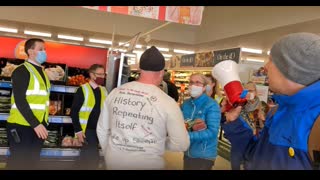 WELL DONE - "Normal people" shopping with megaphone Sainsbury's 11th April uk